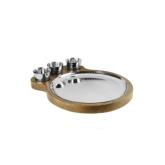 Round Platter With Conical Bowl ( Set Of 3) With Wooden Underliner Vintage Finish